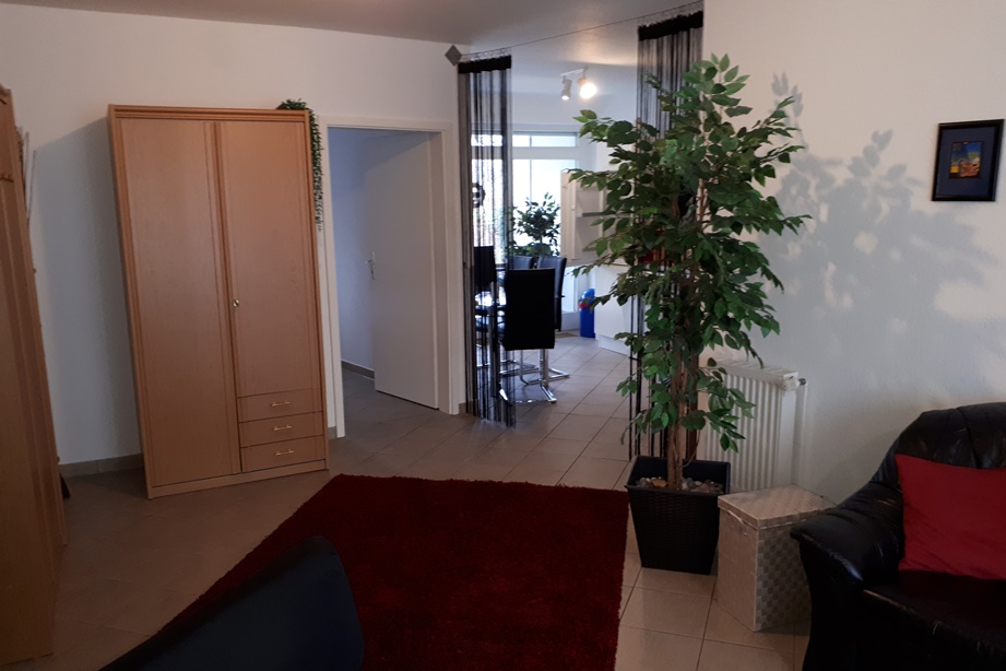 Durch den im Eingangsbereich befindlichen Flur (Garderobe, Schuhschrank und Spiegel) gelangen Sie in den großzügigen Wohnraum und das angrenzende Badezimmer (Dusche, Waschbecken, WC, Fön, Handtuchheizkörper, Waschmaschine - kostenfreie Nutzung).